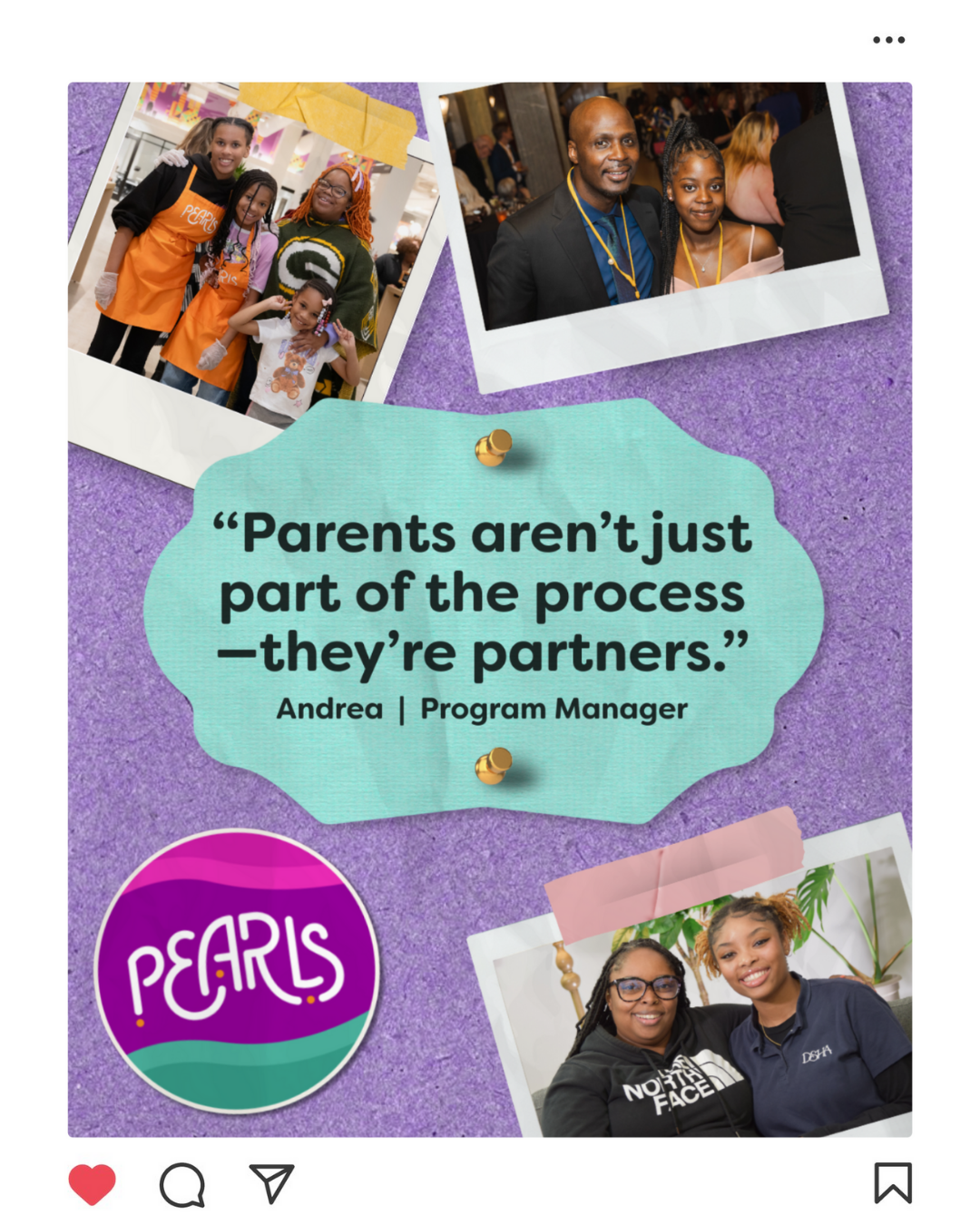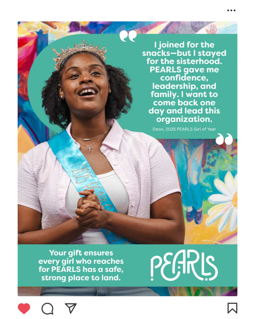PEARLS is improving quality of life and strengthening our community one girl at a time by empowering young women and gender-expansive youth with self-development tools, guidance and support to strive for better, brighter futures by living out the PEARLS values.