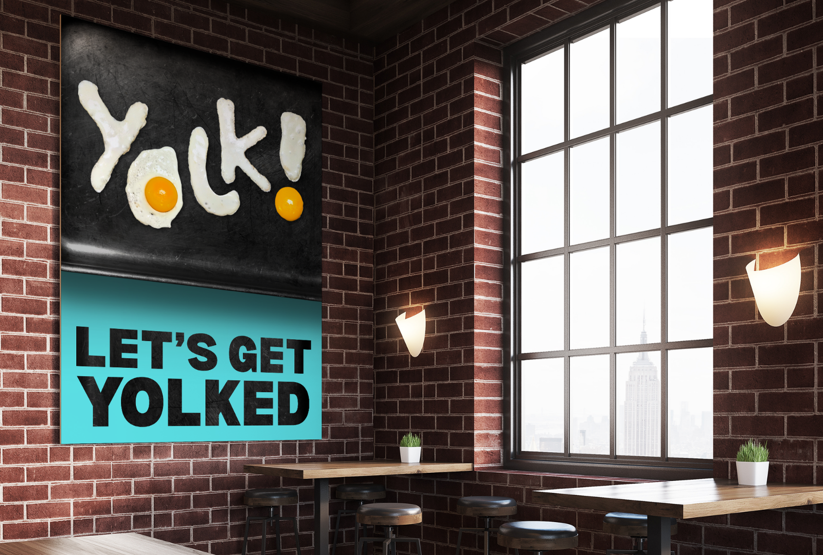The Yolk! logo was created using seven eggs, a piping bag, a griddle, and a dream.