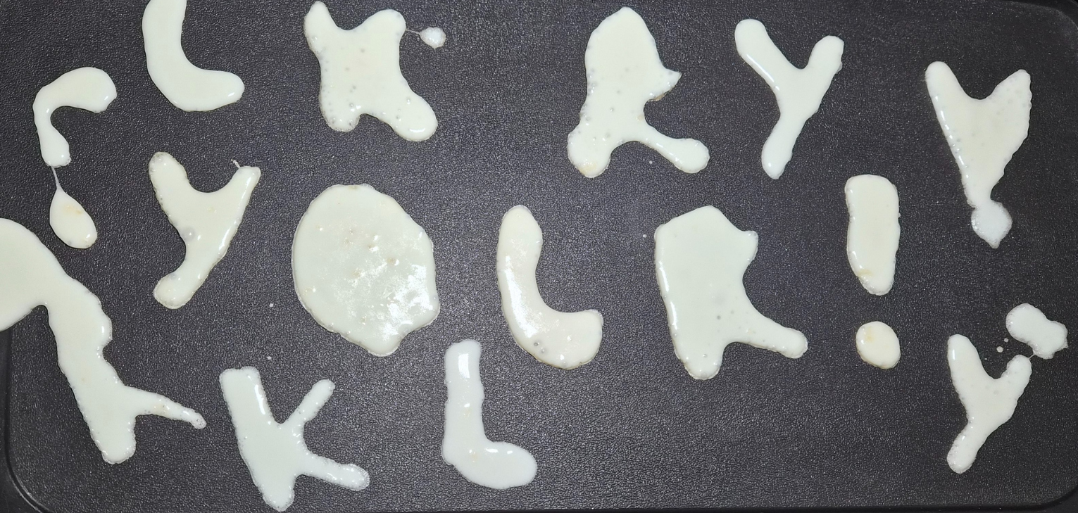 On the first attempt, the egg whites were too runny to hold their shape, so for round two I mixed in flour and milk to thicken the batter enough to pipe letterforms.
